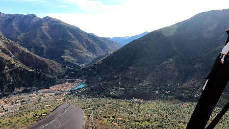 Atterrissages: dans le Lit de la Roya en sortie de village à 300m en amont de la Gare SNCF (non officiel) ou bien sur le terrain de Larmarcreuse dans la vallée de la Pia environ 200m à contrebas en Est du décollage. Ces deux atterrissages sont particulièrement dangereux donc à éviter en pleine journée à cause de la brise très active pour le lit de la Roya ou bien à cause de fort gradient et turbulences au pourtout et sur le terrain de Larmarcreuse. En clair, lorsque l'activité thermo-dynamique est amorcée, il n'y a aucune raison que ça ne repose pas au décollage et donc d'aller se mettre dans des situations cahotiques.